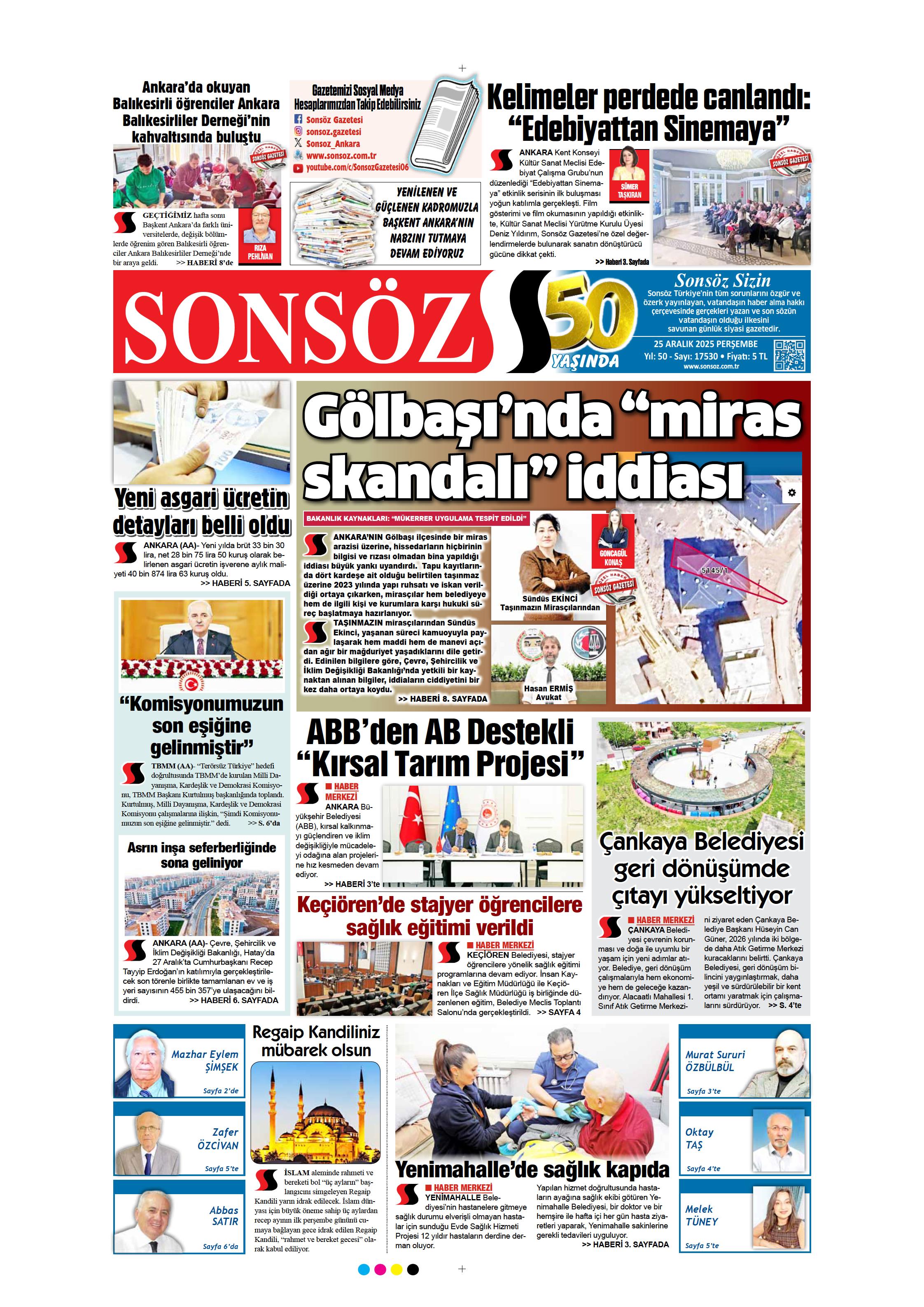 Diğer il ilçelere ait yerel gazete manşetlerini inceleme için aşağıdan il seçimi yapabilirsiniz.